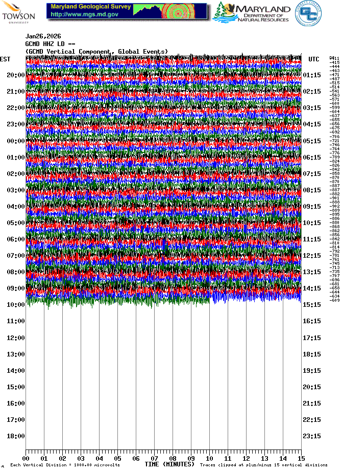 Garrett College Station (GCMD) Helicorder Record